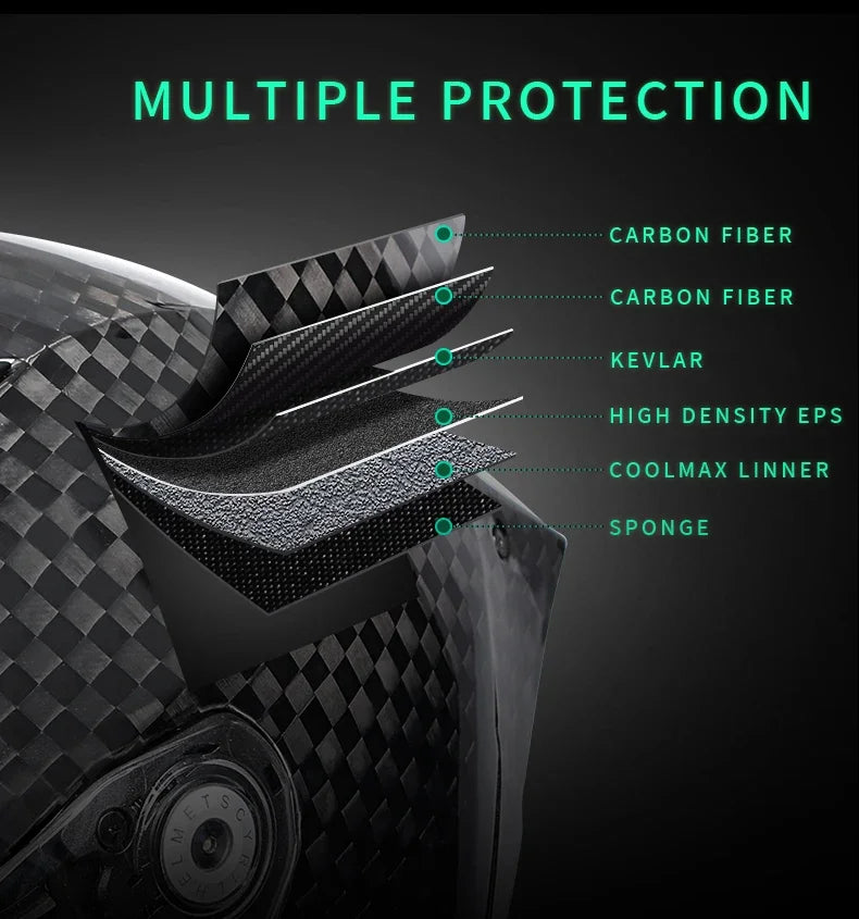 Full Face Motorcycle Helmet, Carbon Fiber Tail Wing Multiple Gear Adjustment, Unisex Helmet DOT ECE Approved
