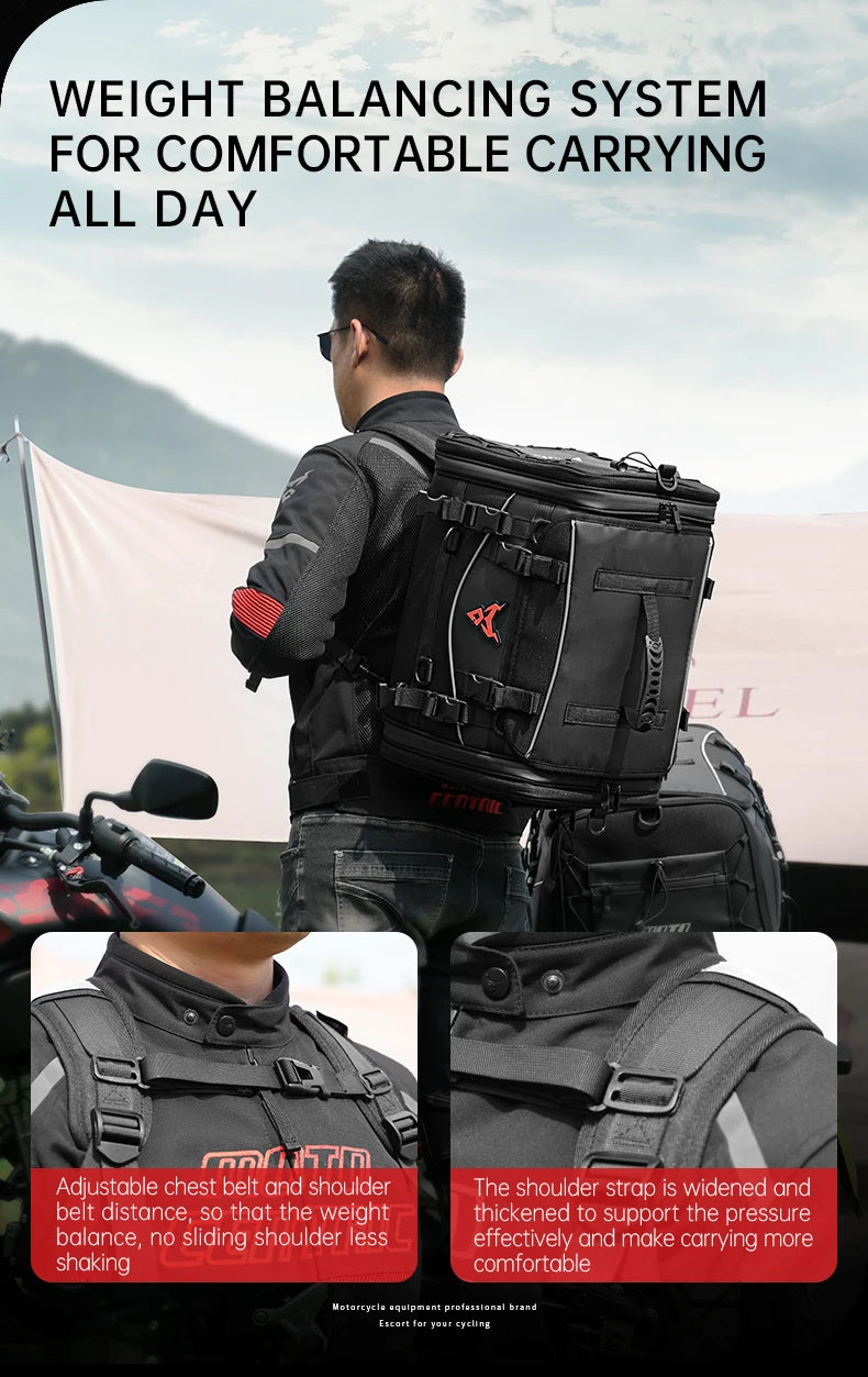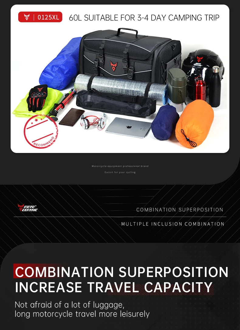 Motorcycle Waterproof Motorcycle Rear Seat Bag 35-50L Helmet Bag High Capacity Motor Tail SaddleBag Rider Backpack