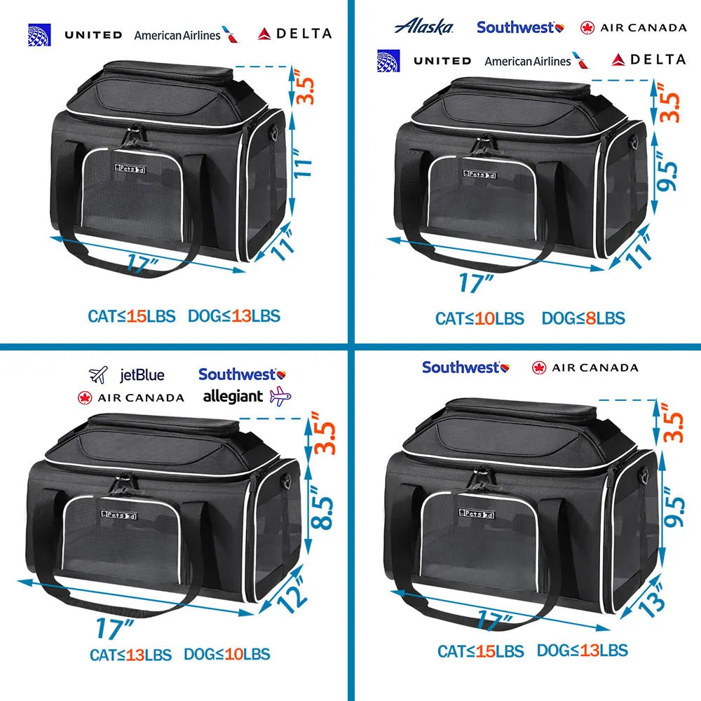 Petskd Top-Expandable Pet Carrier Major USA Airlines Approved Soft Small Dog Cat Carrier with Safety Zipper and AntiScratch Mesh